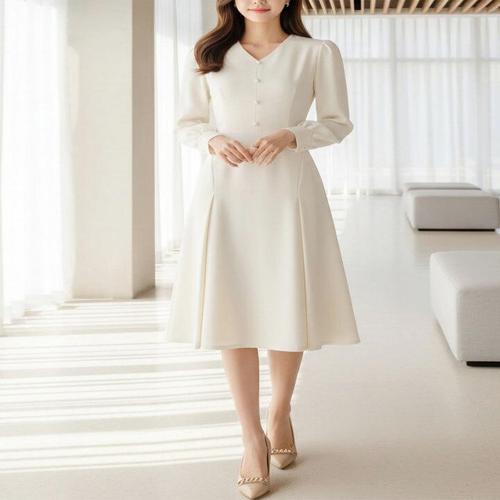 [헤레이스]미디 H라인 브이넥 원피스_YMSH25FW050