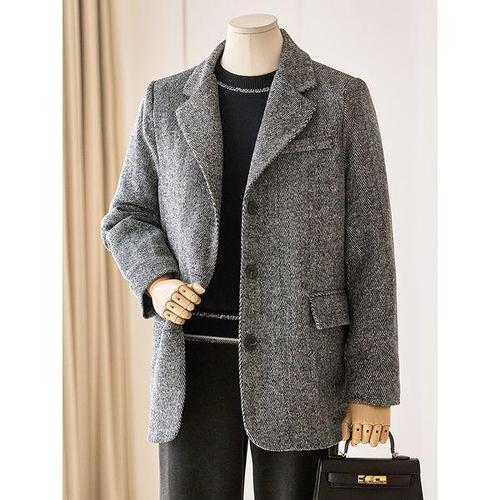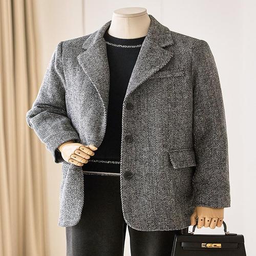 홍언목요 여성 헤링본 자켓 가을 겨울 더블버튼 하프 모직 자켓 데일리룩 하객룩 오피스룩