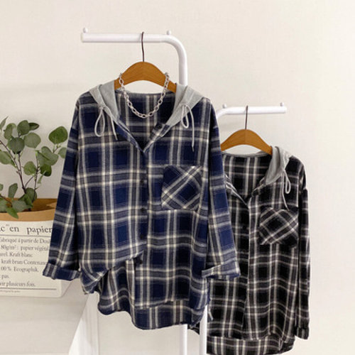 헤이븐 / 율랏 체크 언발 후드 롱 셔츠(2color)