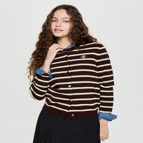 헤지스 여성 [HAZZYS HARRY] 해리 자수 라운드넥 가디건 브라운 (HSSW5DC75W2)