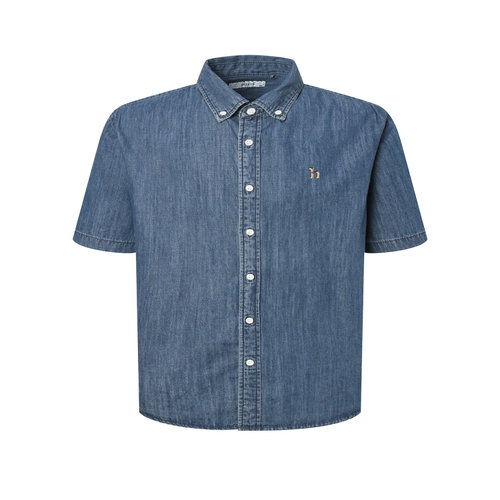 헤지스 남성 블루 데님 반팔 셔츠 (HZSH5B505B2)
