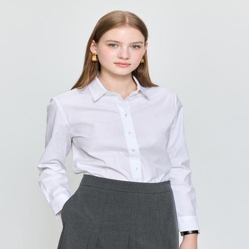 헤지스 여성 25FW 시즌오프코튼스판 솔리드 셔츠 화이트 HSSH5DC78WT