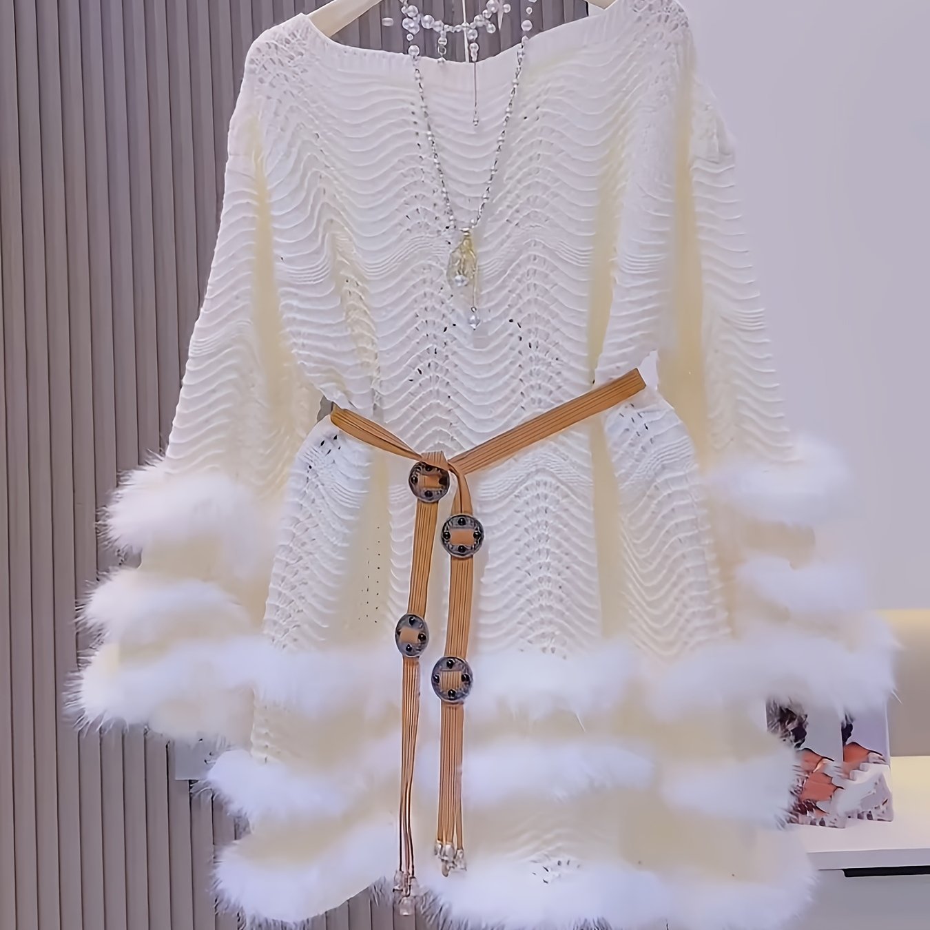 TEMU 여성용 플러시 인조 트림 오버사이즈 스웨터 코트 - 한국 스타일 플러시 & 인조 칼라 긴팔 겨울 재킷, 부드러운 라운드넥 가을/겨울 , 핸드워시 가능한 루즈핏 트렌치 코트, 캐주얼 & 프로페셔널 웨어