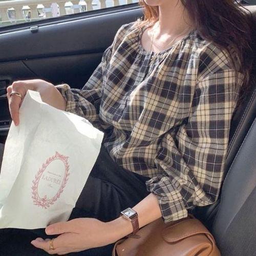 [에이치플러스몰]은창)데일리 깅엄 헨리넥 셔츠 스탠다드 와이셔츠 티탑 폴시즌 시즌 탑 롱슬리브 자켓 ..
