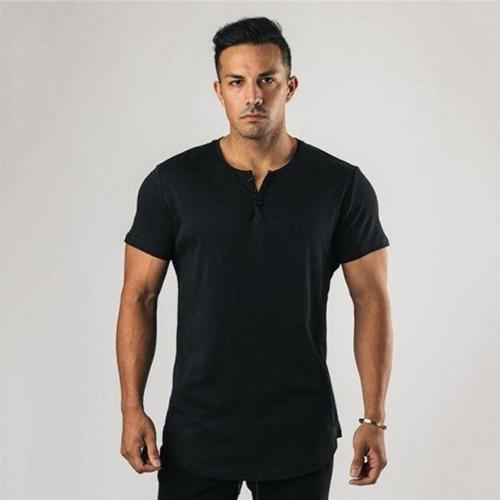 남자 반팔 티셔츠 하프 라운드 머슬핏 남성 헨리넥 반팔티 WFN3LYH