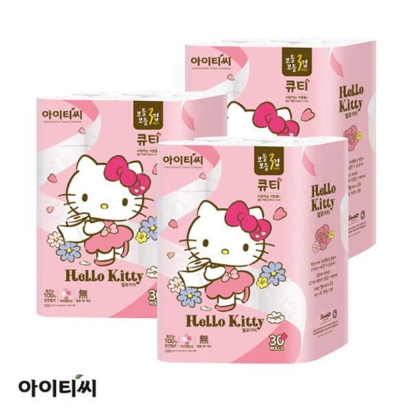 [(주)아이티씨] 극초특가 헬로키티 3겹 큐티 화장지 30롤 3팩
