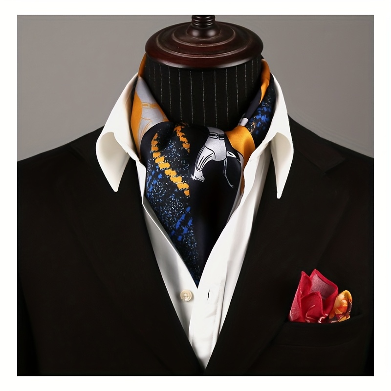 TEMU 말 디자인의 네이비 블루 & 옐로우 100% 실크 스카프 | 우아하고 젊음이 느껴지는 스타일, 데일리 외출, 휴가, 연회, 파티, 공식 행사에 적합, 크리스마스, 생일, 발렌타인데이 선물로 이상적