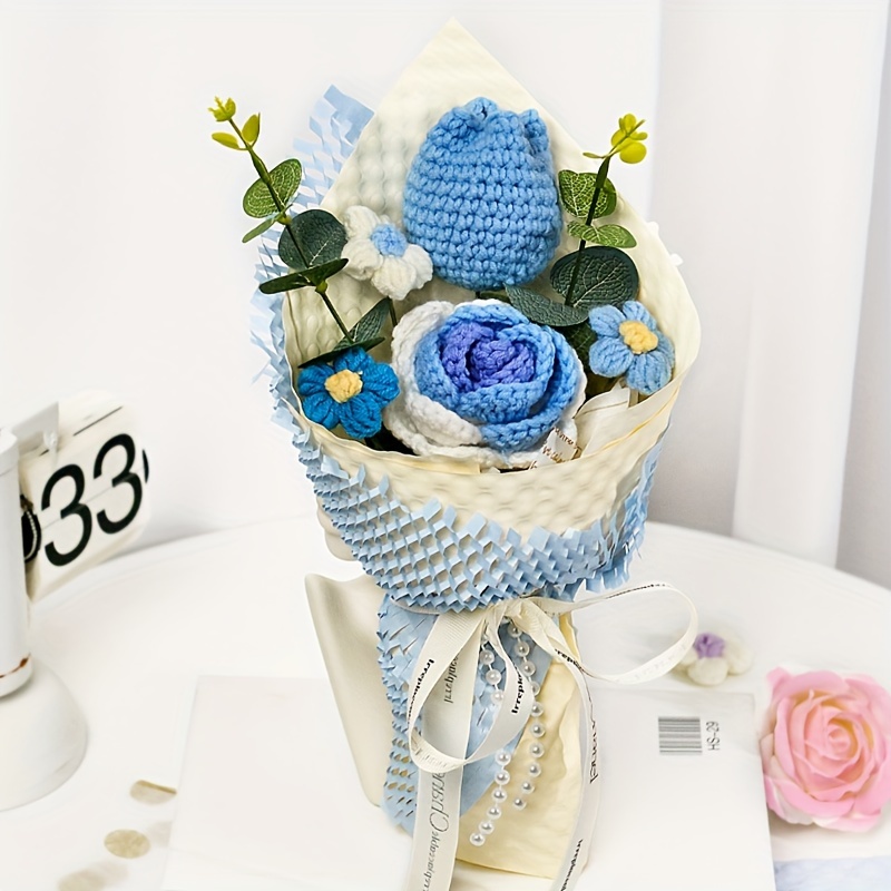 뜨개 꽃 2송이 포장세트 완제품 니트꽃 조화 뜨개질 스승의날 로즈데이 이벤트 선물