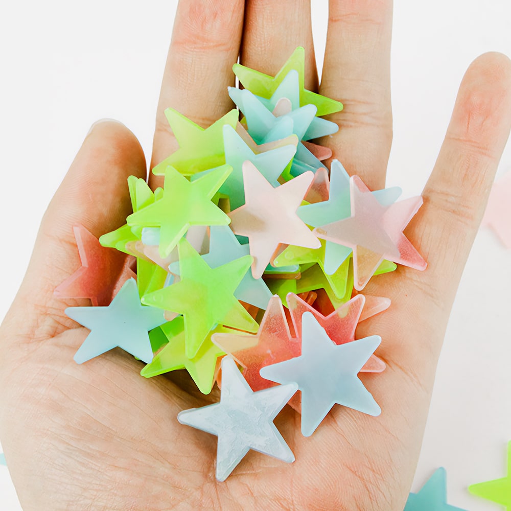 TEMU 야광 별 벽 스티커 500개 - 가정 장식 및 천장 벽용 플라스틱 페인팅 데칼 - 침실 장식용 형광 스티커
