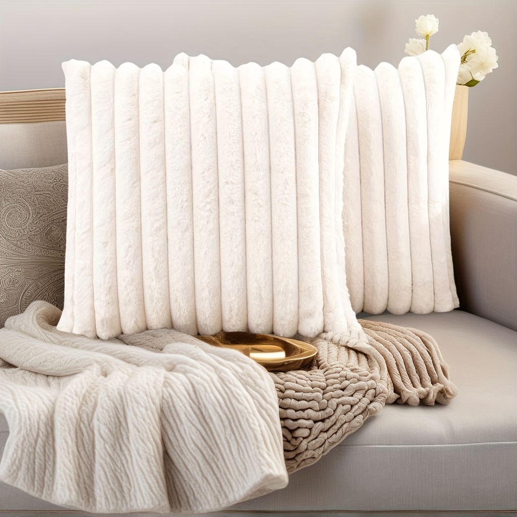 TEMU 1개/2개 세트, 한쪽 인조 플러시 장식용 쿠션 커버, 줄무늬 플러시 소프트 베개 커버, 화이트 소파 침실 실내외 장식