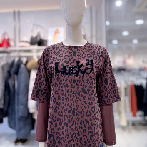 [크로커다일레이디]호피프린트 매쉬배색 티셔츠 CLEFTS108_DG