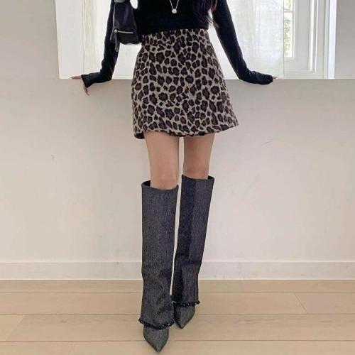 [다잇템_패션]여성 호피 앙고라 슬림핏 에이라인 스커트