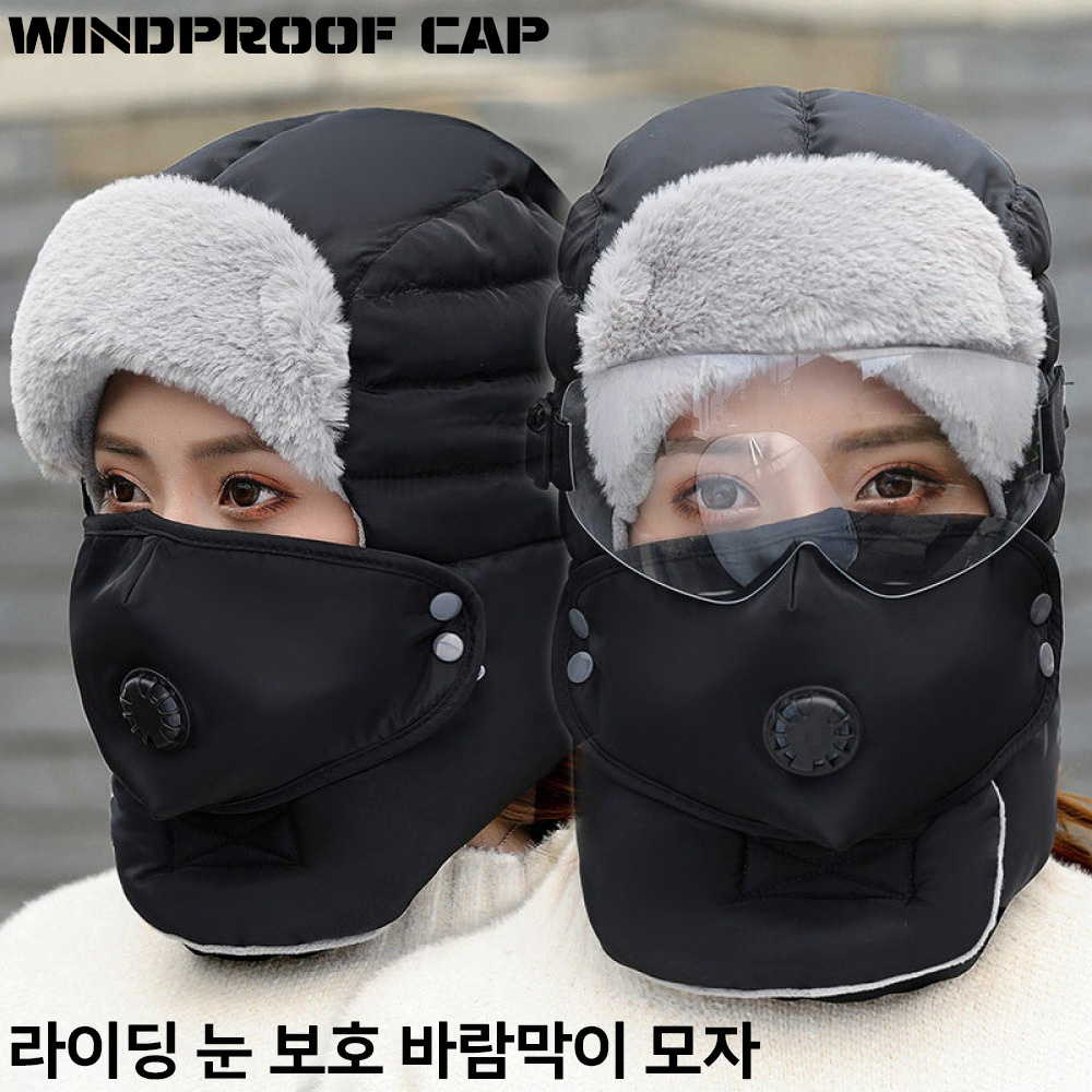 TEMU 겨울 모자 방풍 스키 겸용 고글 일체형 라이딩 헬멧 호환 모자 - 360° 두꺼운 기모 소재, -45°C 한파 차단, 사이즈 조절 가능, 데일리