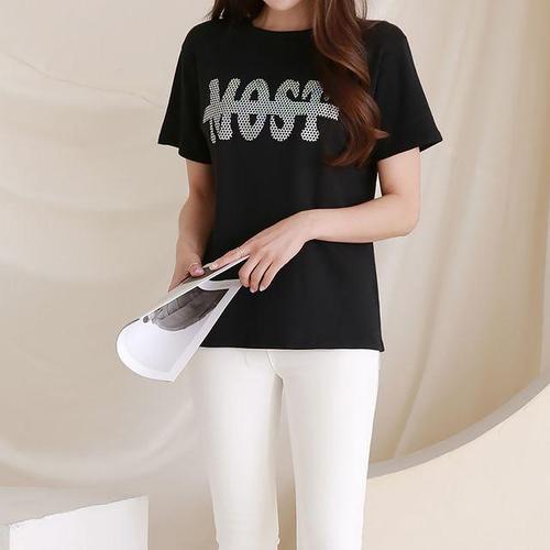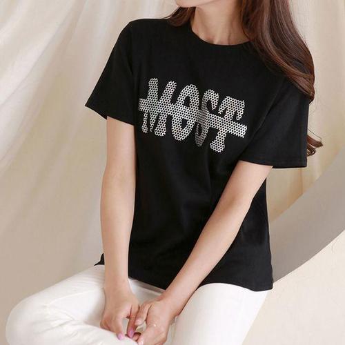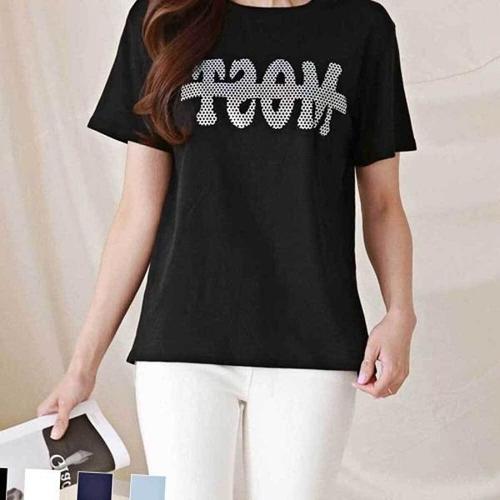 [셀러허브_여성트랜드패션]ONM 스타일리시 홀로그램 티셔츠 캐주얼 블랙 반팔