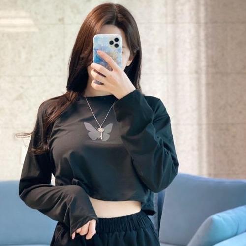 [에이치플러스몰]여성 편안한 인기 홀로그램 나비 긴팔크롭티