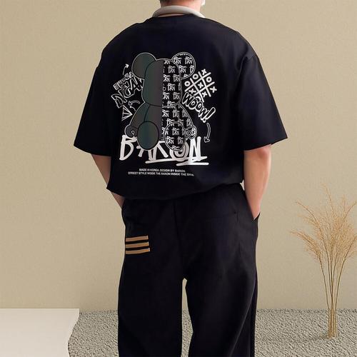 [오노마] ONM 스타일리시 홀로그램 티셔츠 캐주얼 블랙 반팔