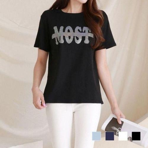 [셀러허브_여성트랜드패션]ONM 모스트 홀로그램 여성 반팔 라운드넥 여름 티셔츠