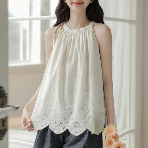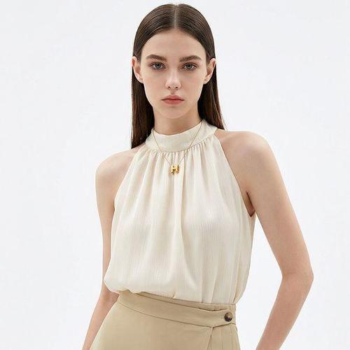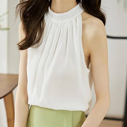 [에이치플러스몰]여름 인기 여성 홀터넥 민소매 감성 블라우스 슬리브