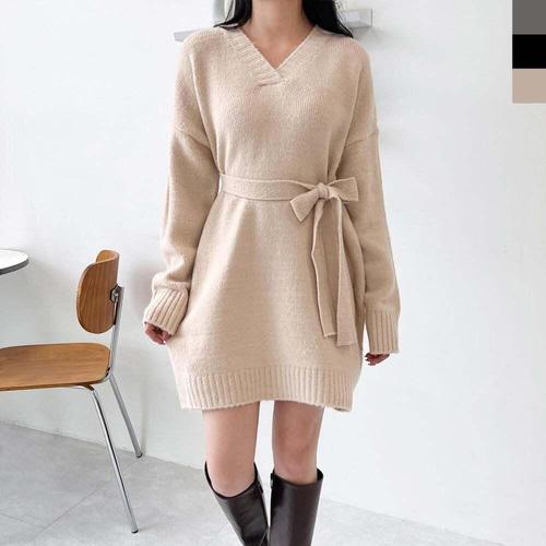 [모노무드]모노무드 블루모드 2LUPP 1049 여자브이넥 스트 니트원피스 홈 미니 멜빵