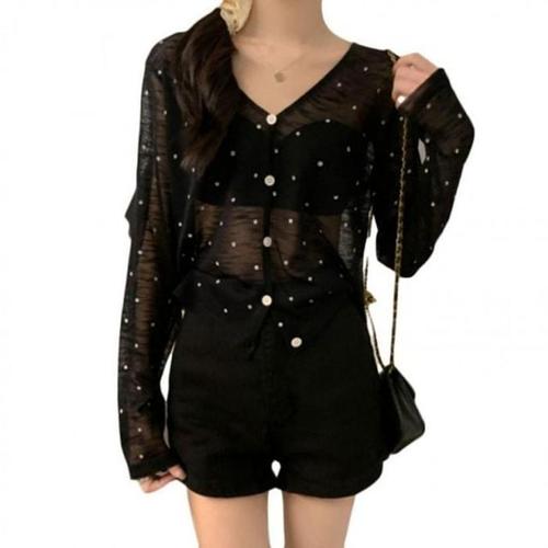 [뱅뱅]여성 루즈핏 도트 가디건 (NUYW63)