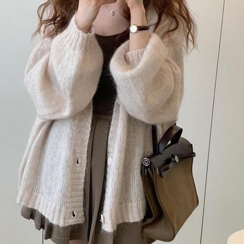 Bornladies 여성용 새 니트 카디건 긴 소매 o 넥 버튼 루즈핏 소프트 모헤어 블렌드 봄 가을 패션 스웨터