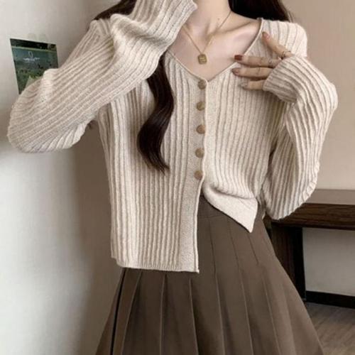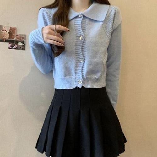TEMU 프렌치 스타일 여성용 소프트 가디건, 2024 가을 라운드넥 루즈핏 숏탑|블라우스|가디건|옷