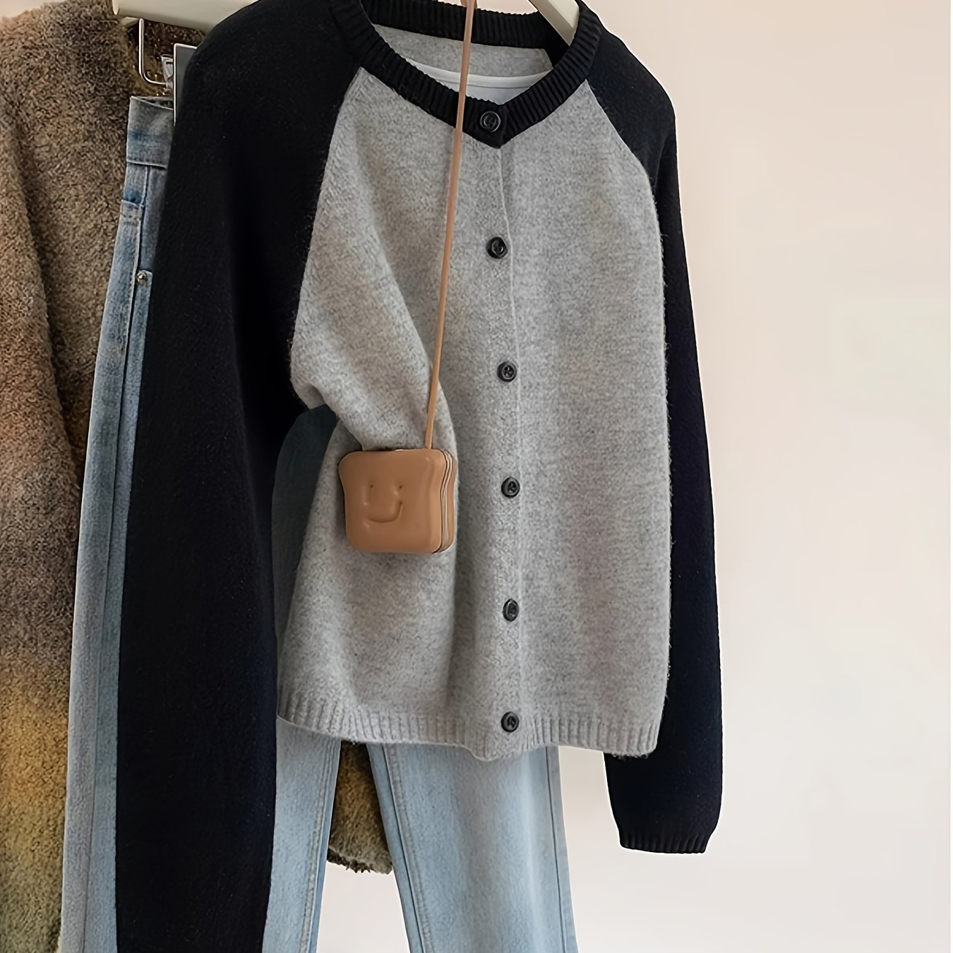 TEMU 새로운 루즈핏 라운드넥 스웨터, 솔리드 컬러 가디건, 봄과 가을에 어울리는 다용도 탑