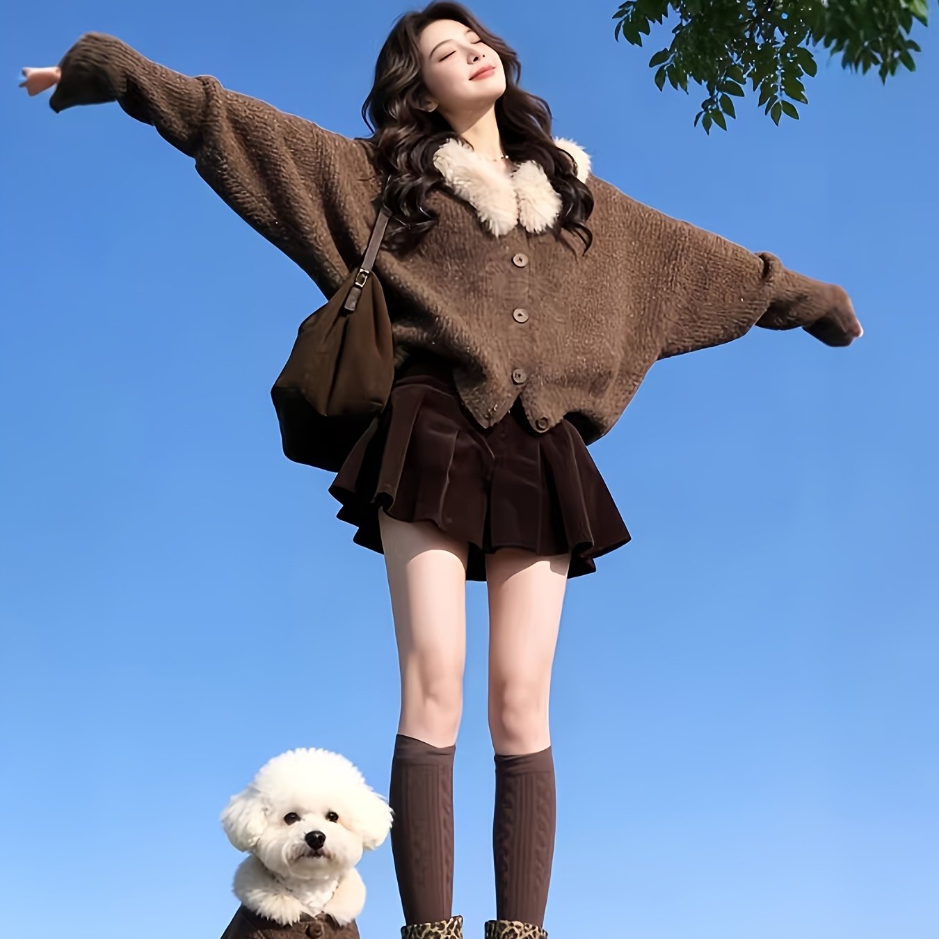 TEMU 여성용 봄 우아한 페이크 칼라 소프트 가디건, 2026 가을/겨울 다용도 스타일리시 스웨터 코트, 한국 빈티지 스타일 페이크 칼라 스웨터 코트, 두꺼운 레이지 스타일 캐주얼 루즈핏 다용도 신상 가디건