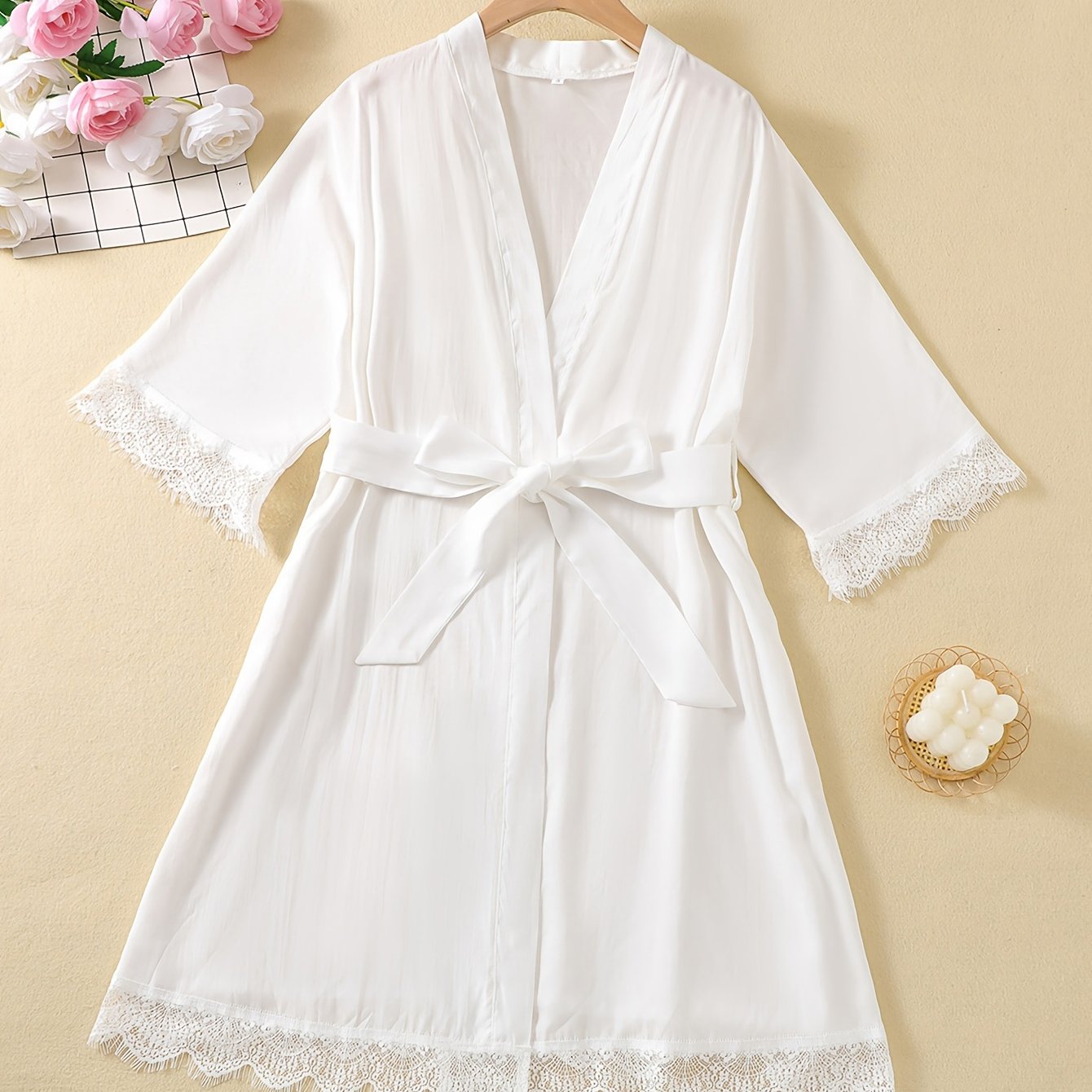 TEMU 생동감 있는 일본 빈티지 애니메이션 코스프레 기모노 가디건 - 꽃무늬 경량 여름 비치 커버업, 3/4 소매, 폴리에스터, 루즈핏, 우아한 전통 스타일, 애니메이션 의상