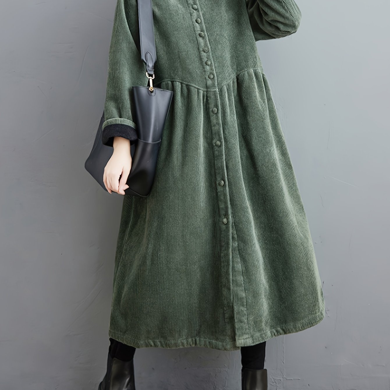 TEMU 일본 스타일 두꺼운 코듀로이 겨울 코트, 허리 주름, 루즈핏, 롱 기장