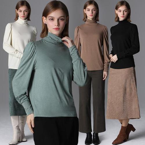 [홈쇼핑방송/르오트(LeOT)] 울 블렌디드 퍼프 셔링 터틀넥 티셔츠(4종택일)-사이즈 44~88다양