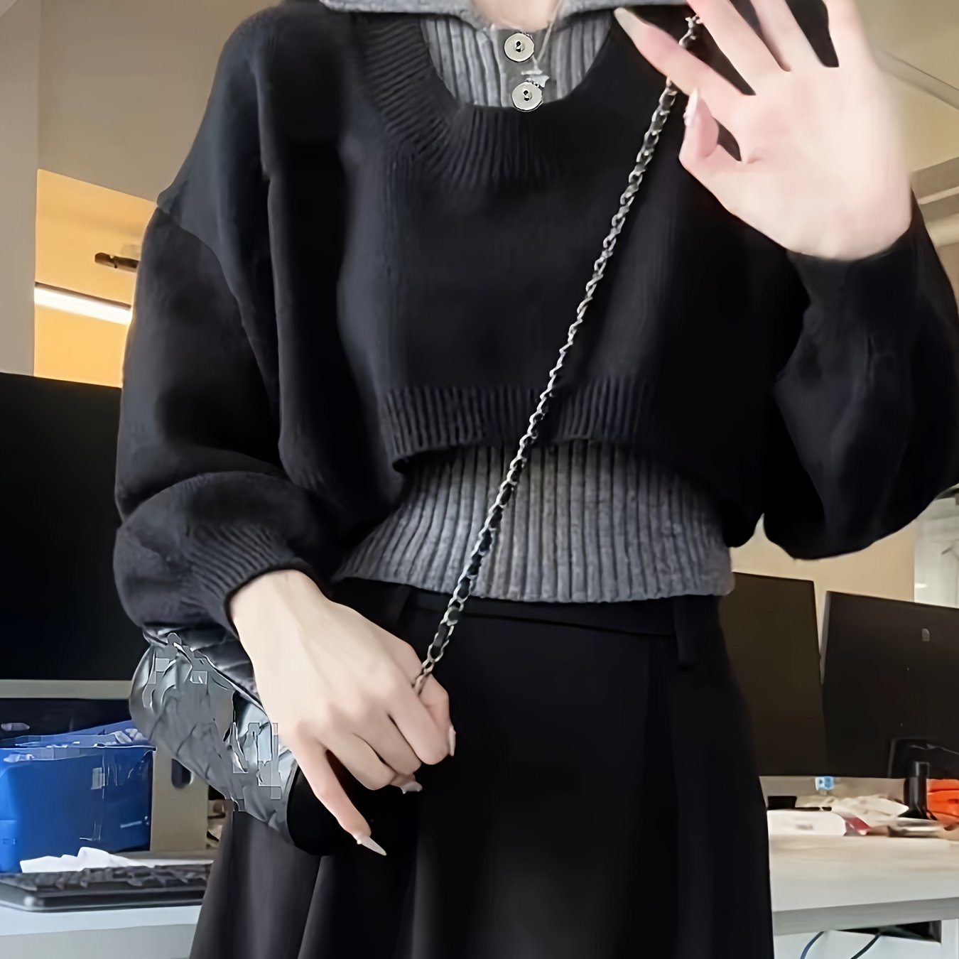 TEMU 짧고 슬림한 컬리지 스타일 가을/겨울 여성 패션 스웨터 투피스 프로페셔널 탑 재킷, 선물, 캐주얼 스타일, 단색, V넥 디자인, 가벼운 재킷, 여성 재킷, 여성 패션
