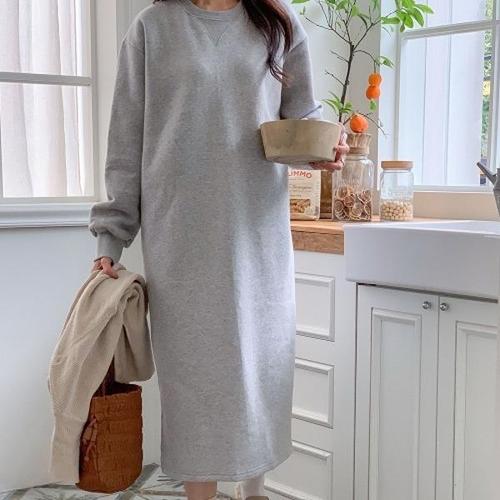 [미라클세븐]여성용 겨울 기모 롱원피스 박시 홈웨어 양트임 디자인