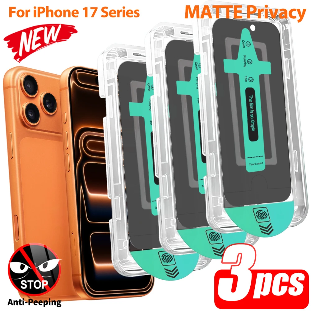 NNBILI 3개입 무광 프라이버시 강화유리 스크린 보호필름 아이폰 17 16 15 14 13 12 11 Pro Max 17Air 원클릭 설치