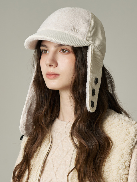 [화이트샌즈] 코듀로이 후리스 배색 이어머프 캡 뉴할렌 (6 colors)