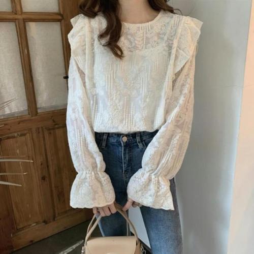 [끌레아]여성 러블리 레이스 자수 블라우스 큐티룩 화이트셔츠