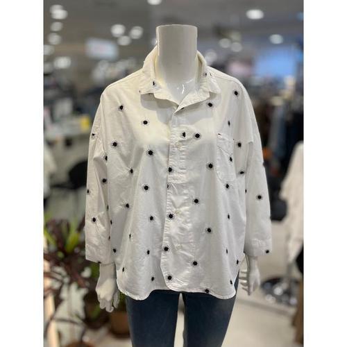 여성 카라넥 롤업 꽃자수 간절기 셔츠 블라우스 DGB-WBL-4741-화이트