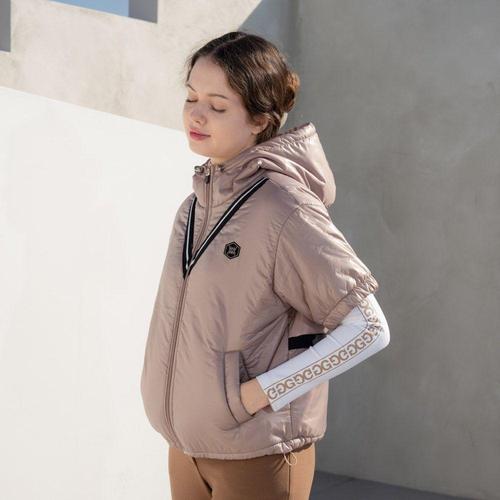 [챌린저]여성 후드 탈부착 멜란지 반팔 다운 자켓 카키베이지_CH