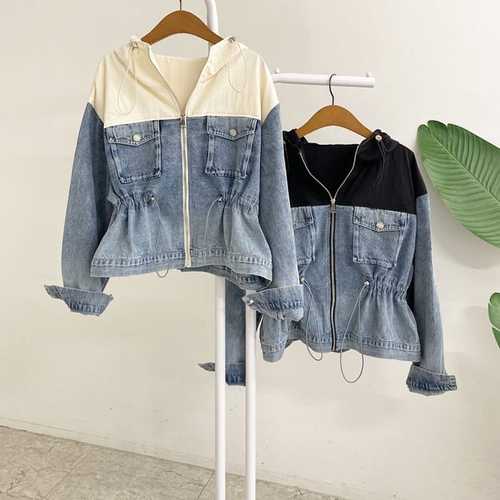 [셀럽하우스]후드 MSAI5437 배색 탈부착 데님 청자켓 데일리 자켓 크롭기장