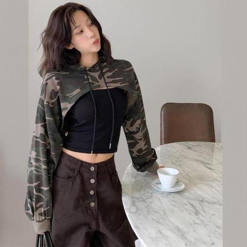 [신상오픈런]여성 후드 크롭 볼레로 레이어드 티셔츠