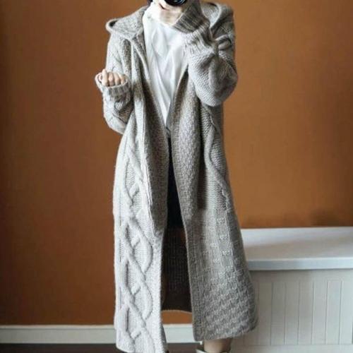 [엄지척]뜨개질 롱 니트 그레이 꽈배기 롱가디건 후드 후드가_19801156_667501