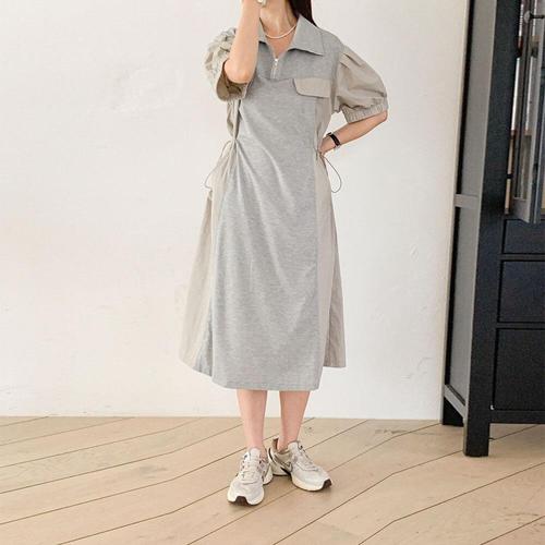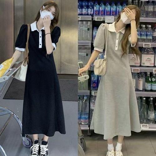 [모노무드]LMO 여성용청순 올데이 카라배색 하프슬리브 롱기장 롱드레스