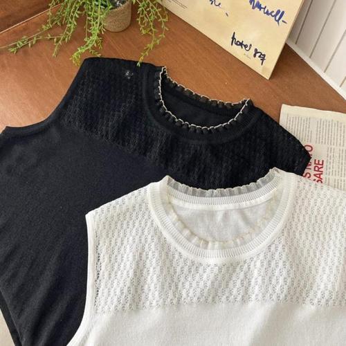 [다잇템]여자 프릴 넥 라인 배색 하프 펀칭 민소매 나시