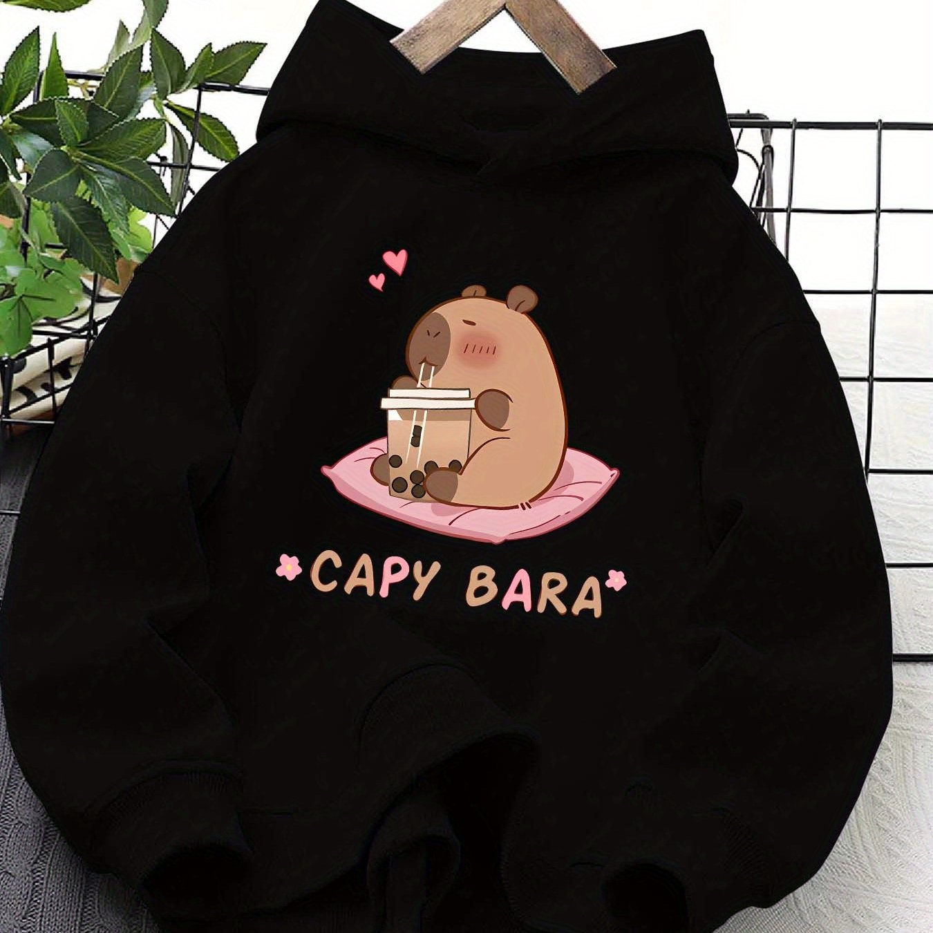 TEMU 봄/가을에 적합한 캐주얼한 후드 스웨트셔츠 - 카피바라 프린트 폴리에스테르 후드티, 정사이즈, 약간의 신축성 있는 소재, 니트 직조, 매일 착용, 야외 활동 및 여행에 적합 - 특별한 날을 위한 선물로 적합합니다.