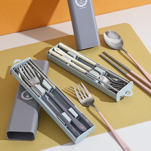 마시피렌체 소리안나는 무소음 수저통 수저 포크 젓가락 3가지 어린이 직장인 캠핑 피크닉