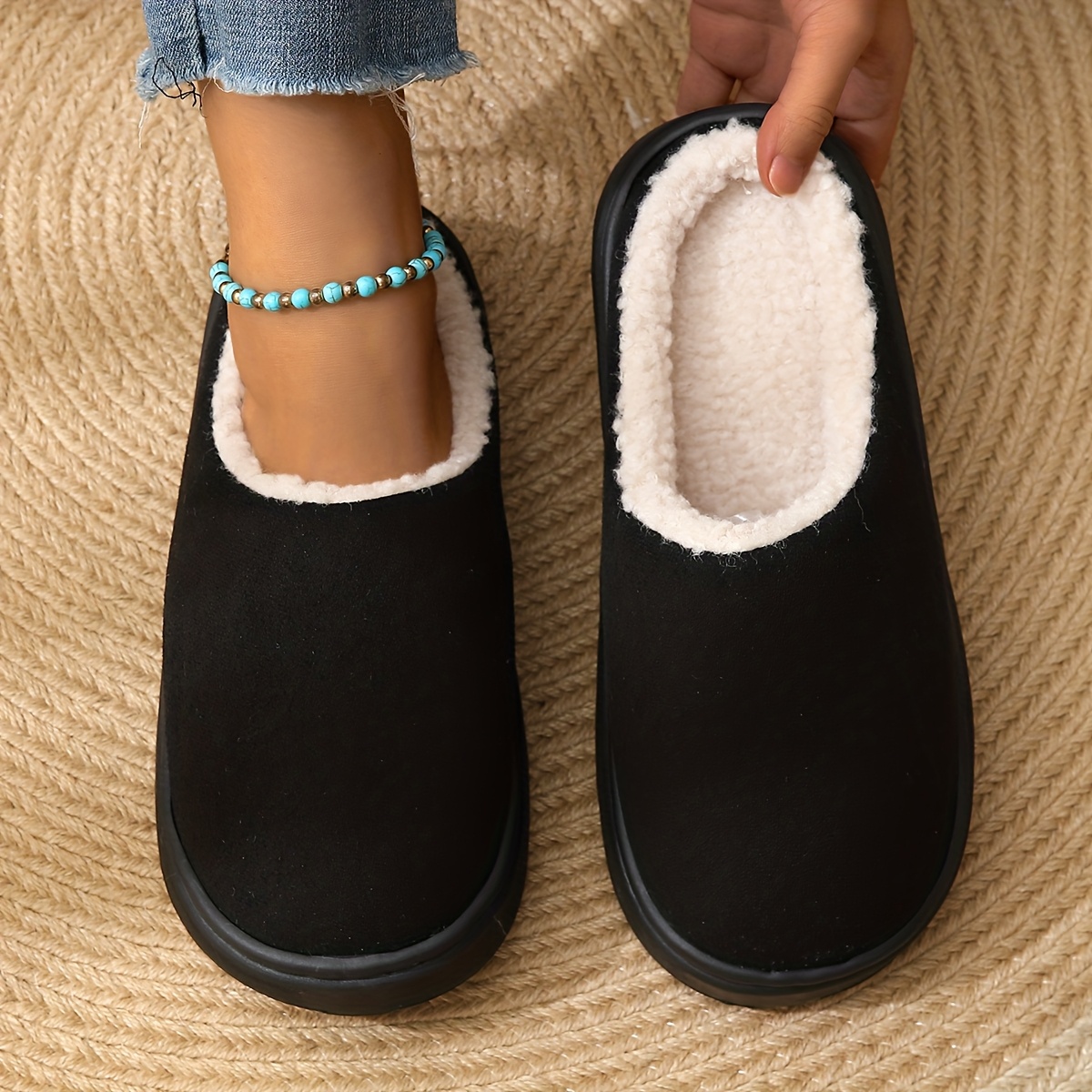 TEMU 아늑한 양털 패턴 슬리퍼, 우아한 봉제 안감 신발에 슈퍼 소프트 슬립, 따뜻하고 편안한 신발