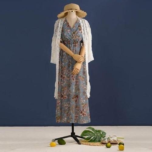 여성 여름 쉬폰 원피스 반팔 시원한 드레스 플로럴 패턴 가벼운 캐주얼 바캉스 휴가룩