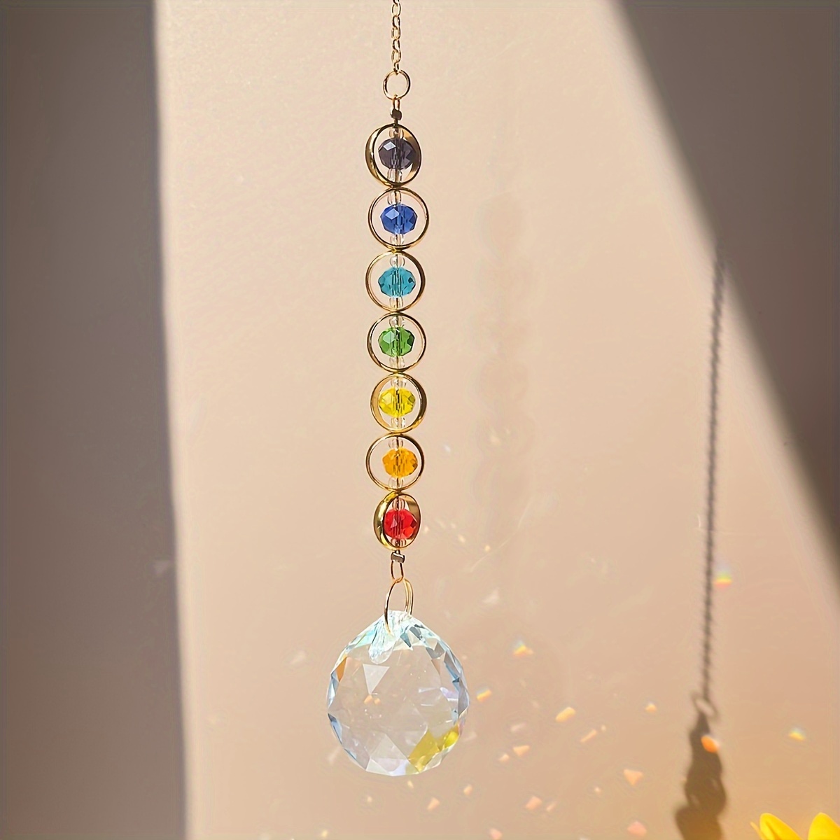 TEMU 1개 무지개 선 캐처 - 컬러풀 비즈가 있는 유리 프리즘, 전원 필요 없음, 추수감사절 & 데이 홈 데코에 완벽