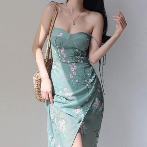 A라인 롱원피스 홈웨어 휴양지룩 슬릿 뷔스티에 멜빵 원피스 점프수트