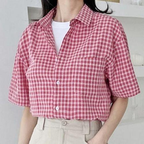 [에이치플러스몰]우먼 여자숏티 타탄 와이셔츠 드레스셔츠 라이트룩 심플 솔리드 일상템 일상 휴양지 여..